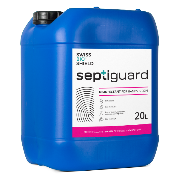 SeptiGuard® is free from alcohol, phenols, surfactants, colorants and fragrances.